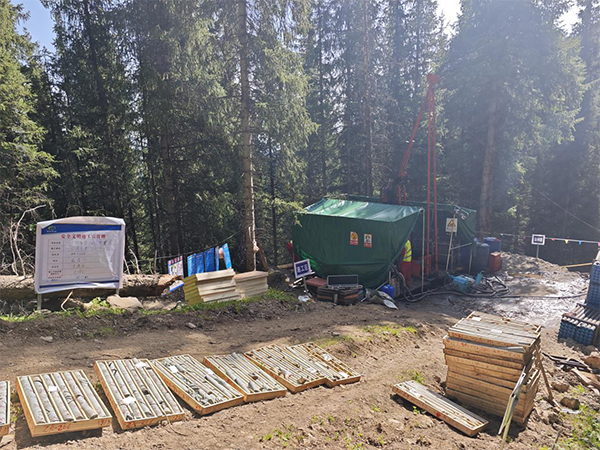 近日,由队属核勘公司承接的新疆伊犁某铜矿深孔钻探项目首批钻孔顺利开钻。首批钻孔设计孔深500-600米,倾角70-74度,投入2台液压式钻机。
